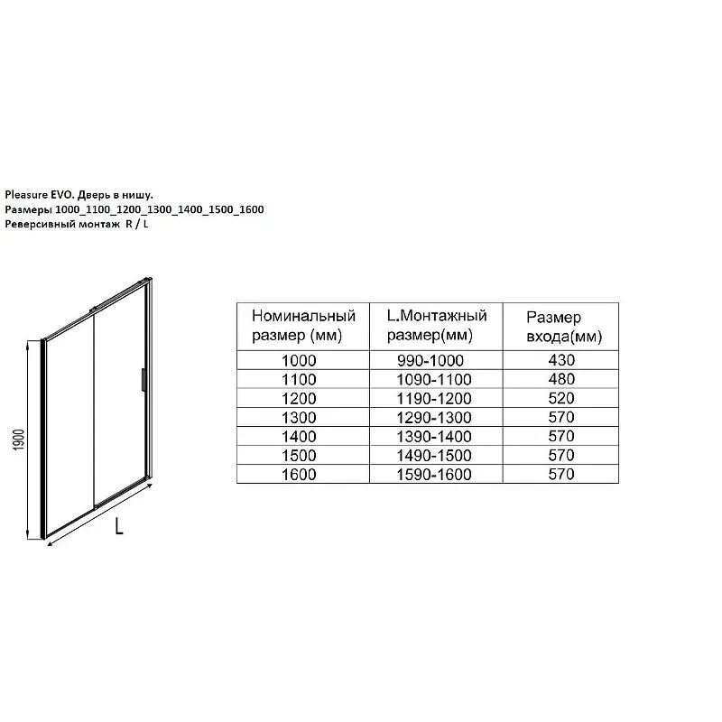 • Ширина входа: 570 мм.