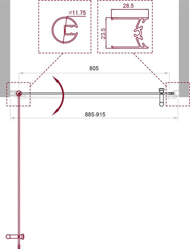 Регулировка ширины: предусмотрена за счет боковых профилей