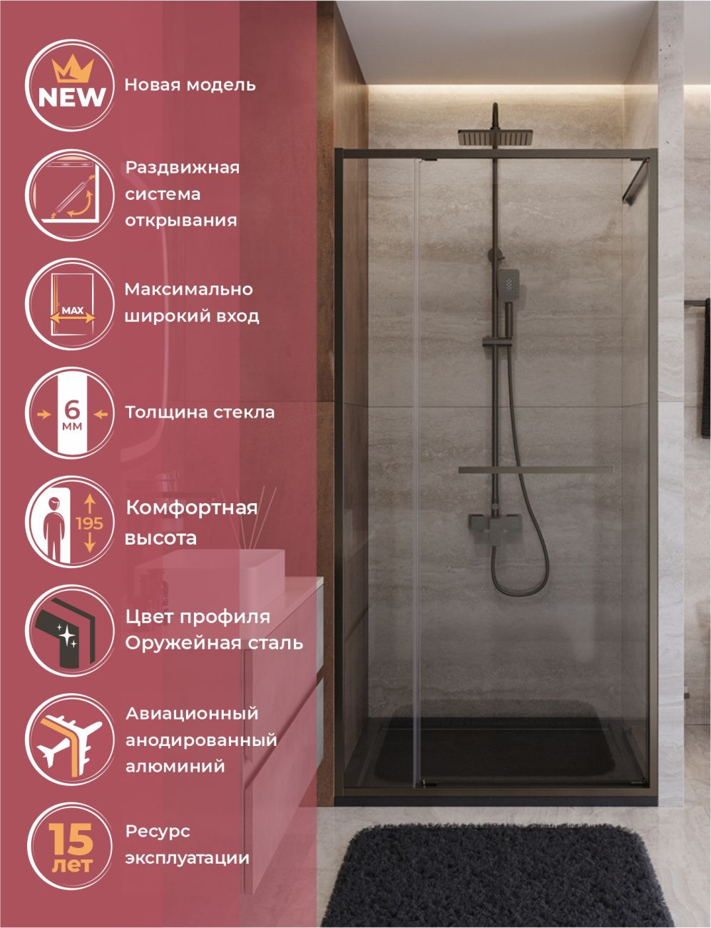 Душевая дверь CEZARES LUX-B-FS-11-110-C-GM оружейная сталь купить