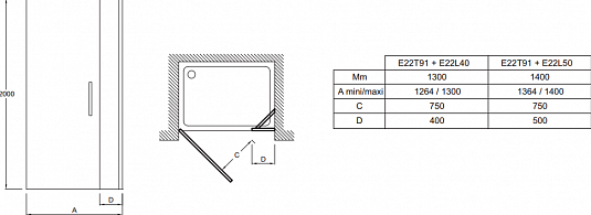 Душевая дверь Jacob Delafon CONTRA E22T91-GA 90*200