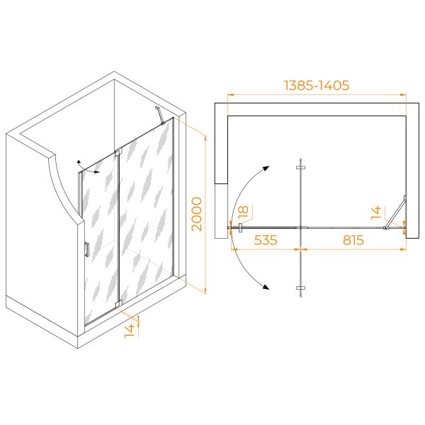 Душевая дверь RGW HO-014 350601414-11 140см хром купить