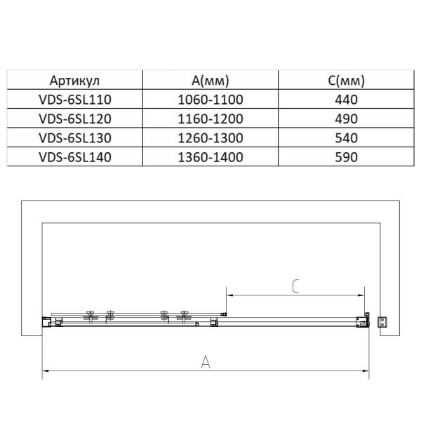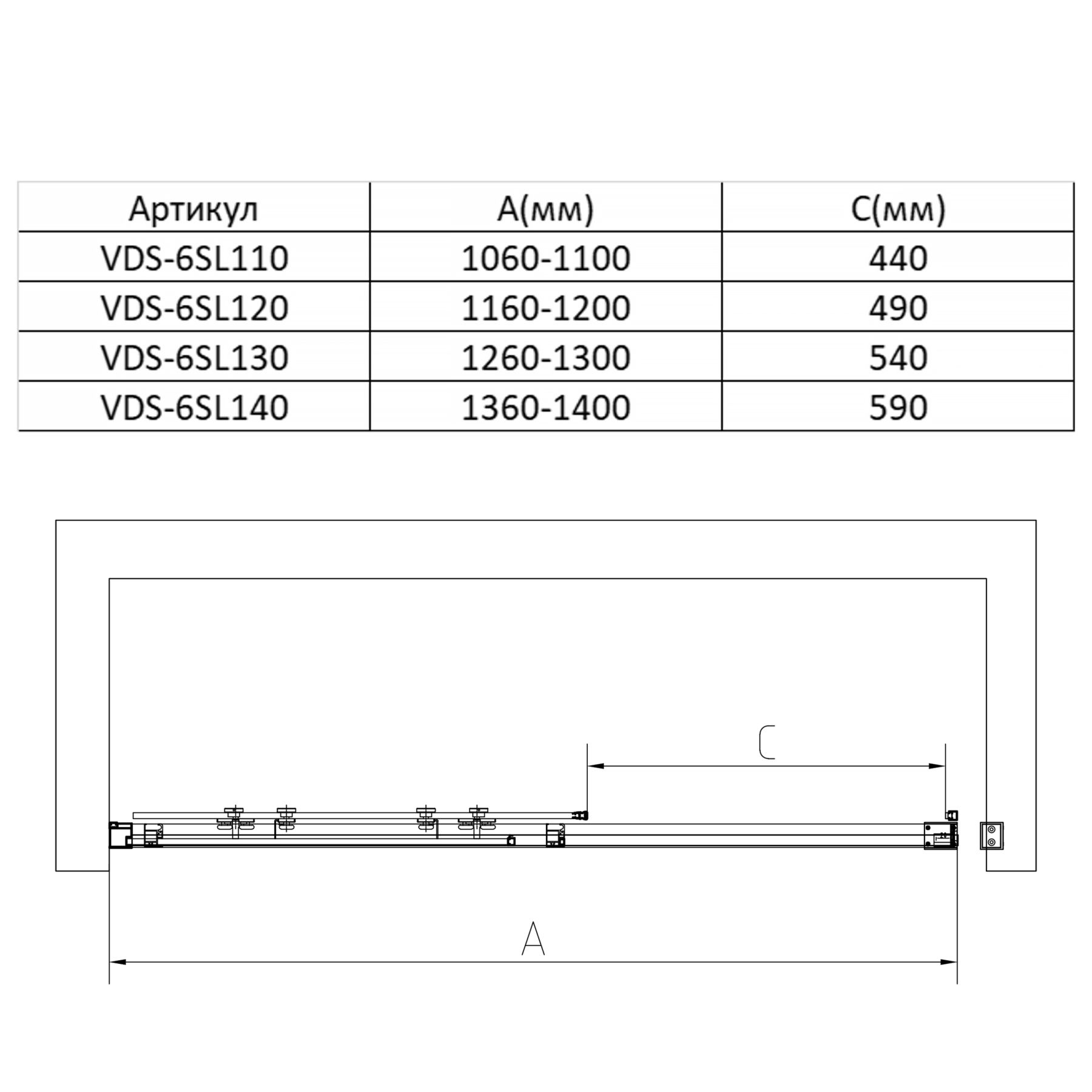 Душевая дверь Vincea Slim 8mm VDS-6SL130CLB, 1300, черный, стекло прозрачное
