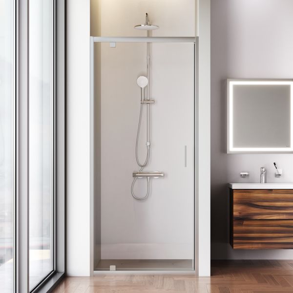 Душевая дверь в нишу Gem – легкая функциональная конструкция для стильного оформления душевой зоны в ванной комнате. Лаконичный дизайн и четко выверенные пропорции от собственного бюро AM.PM Design. Распашная конструкция образует широкий вход, комфортный для людей любой комплекции.