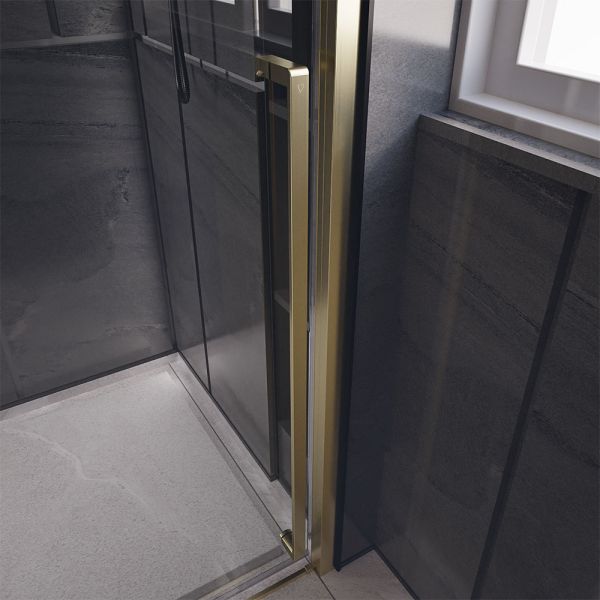 Душевая дверь Veconi Premium Trento PTD-30G, 1200х2000, брашированное золото, стекло прозрачное купить