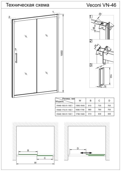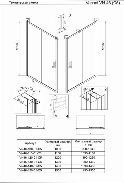 Душевая дверь Veconi Vianno VN-46, 1000x1950, хром, стекло прозрачное купить
