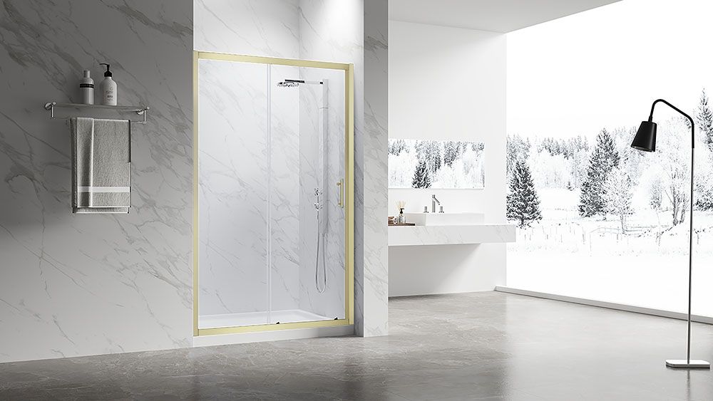 Душевая дверь Veconi Vianno VN-55G, 1000x1950, Золото брашинг, стекло прозрачное купить