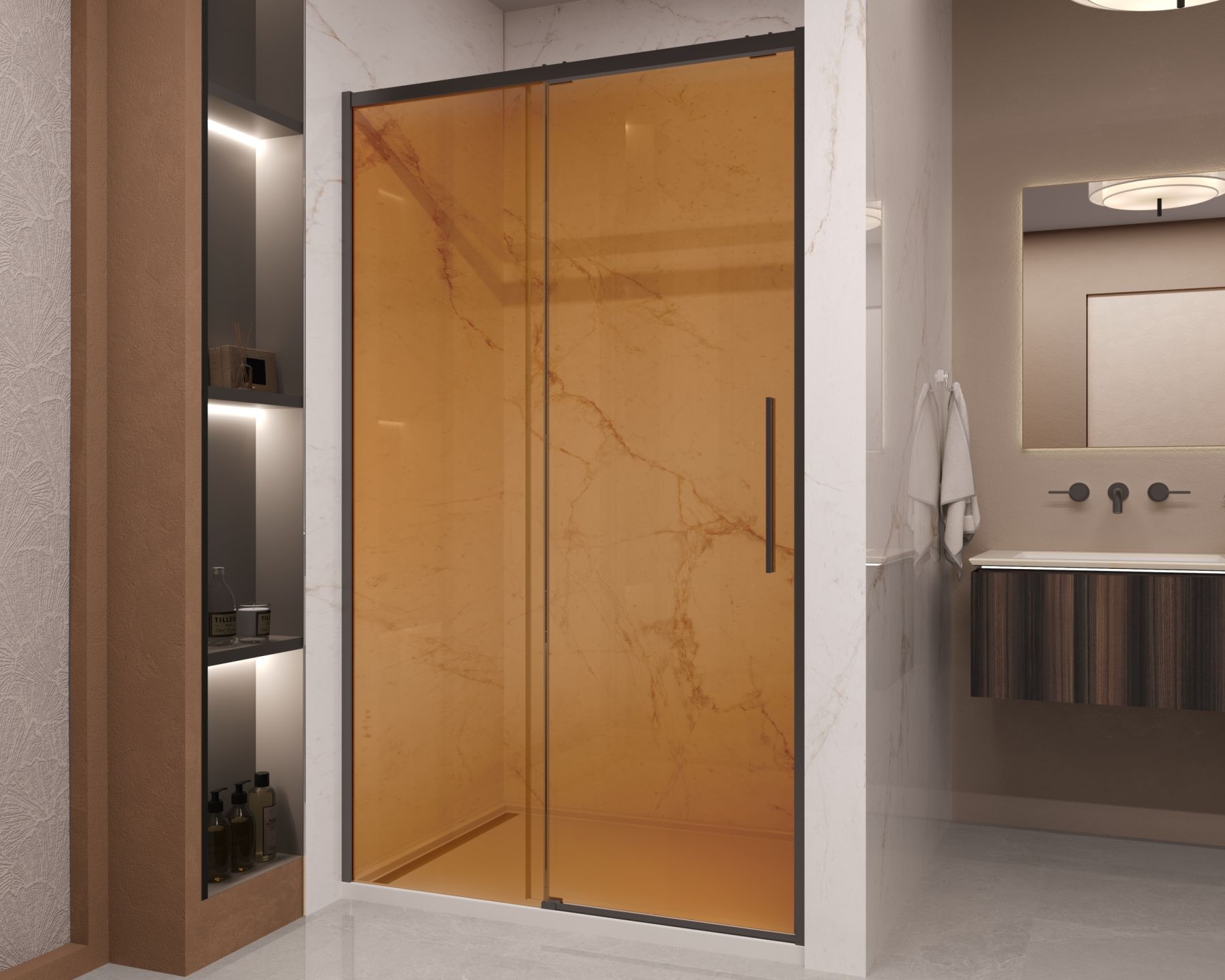 Душевая дверь Vincea Stella VDS-1ST120GSB, 1200, черный, стекло янтарь