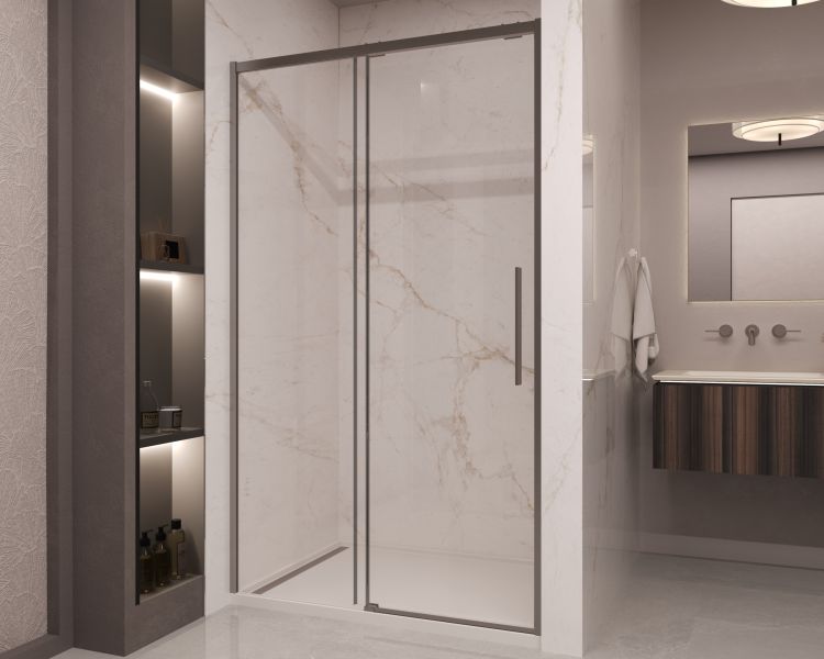 Душевая дверь Vincea Stella VDS-1ST150CLGM, 1500, вороненая сталь, стекло прозрачное