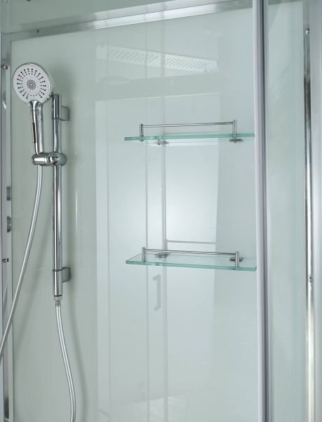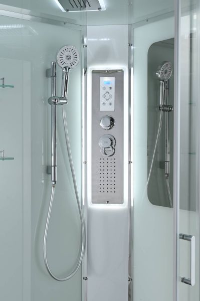 Стильная душевая кабина AvaCan сочетает в себе высокую функциональность, практичность и надежность. При изготовлении применяется безопасное закаленное стекло, надежно фиксируемое алюминиевым профилем.Профиль сделан из алюминия повышенной прочности. Сборка без силикона (увеличивает срок службы, защищает от протечек), внутренняя сборка (облегчает установку и ревизию; позволяет установить в ограниченном пространстве и обойтись без демонтажа других сантехнических приборов), смеситель резьбовой (без хомутов). Двойные металлические ролики дверей (распределение нагрузки на два ролика, увеличивают срок службы). Душевая штанга(позволяет регулировать по высоте ручную лейку), ручная арома-лейка с витамином С (картридж в комплекте,есть возможность замены или удаления картриджа), полочки(из стекла, с ограничителем), сифон с гидрозатвором, сенсорный пульт управления с функциями: блютуз, LED подсветка, радио, вытяжка, гидромассаж спины, тропический (верхний) душ.