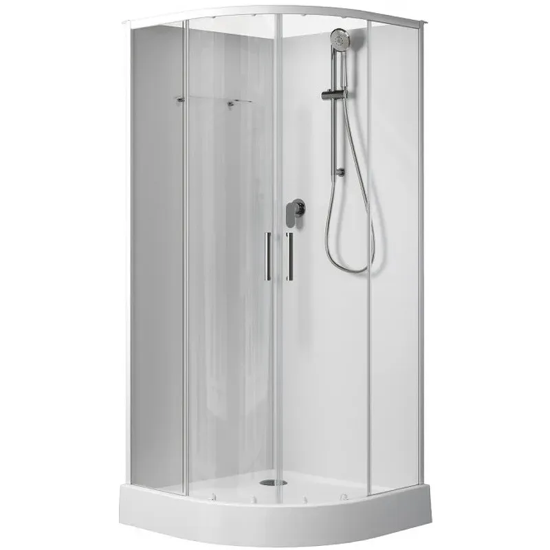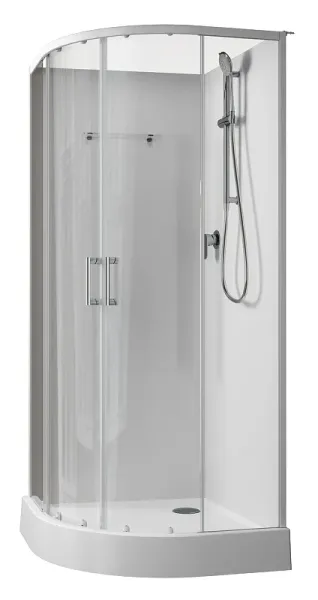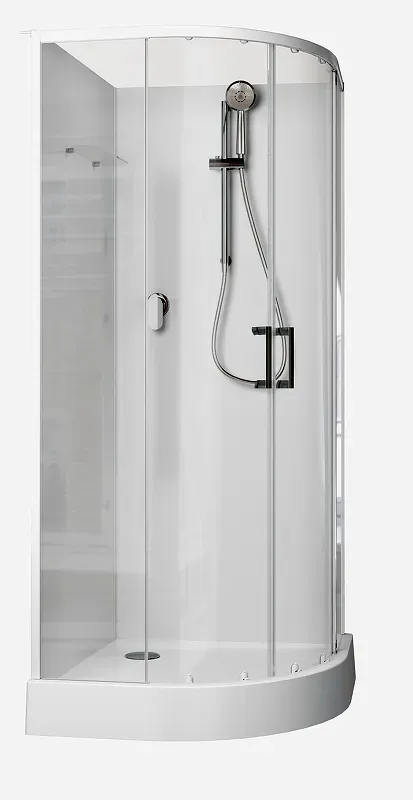 Душевая кабина Aquanet Passion EVO R white 90x90 набор 1 выглядит изыканно, так как отвечает потребительским запросам. Имея ширину 900 мм и глубину 900 мм, это изделие без проблем может быть установлено в любом помещении. Занимаясь расстановкой мебели и оборудования в ванной, обратите внимание, что кабина универсальная. Это открытая душевая кабина, так как верхняя часть изделия, которую обычно называют крышей, установка не предусмотрена. Дверцы у нее раздвижные, что очень удобно. Посмотрите на поддон, форма которого чаще всего называется четверть круга. Он низкий и выполнен из акрила. Душевая кабина имеет все необходимое. Следует учесть также, что освещение в кабине отсутствует. Для стенок изделия использовано закаленное прозрачное стекло толщиной 5 мм. Выглядит просто и при этом обеспечивает надежность конструкции. Профили в цвете белый подчеркнут изящность конструкции. Душевая кабина произведена в России. Гарантия на изделие: 2 года.