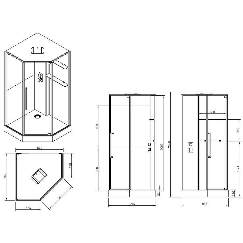 Размер (ШхВхД): 995x2200x995 мм.