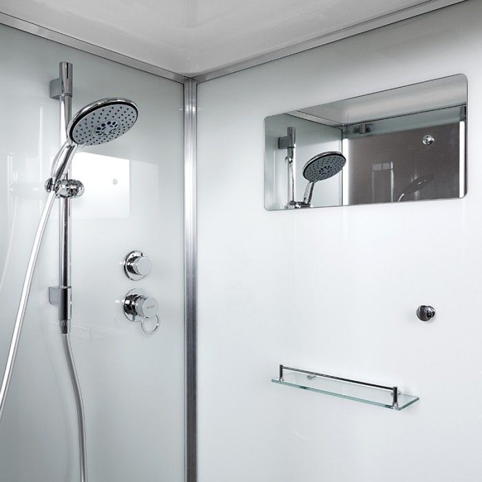 Душевая кабина Deto K409 90х90х208 смДля комфортного принятия душа здесь всё предусмотрено: душевая лейка, которую можно закрепить на штанге; шланг, который удобно вращается на 360 градусов; полочка для шампуней, зеркало, крючок для мочалки.антибактериальная пластиковая вставка (под дерево) в поддон;