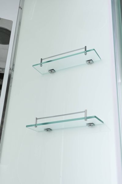 Стильная душевая кабина AvaCan EM2010 сочетает в себе высокую функциональность, практичность и надежность. При изготовлении применяется безопасное закаленное стекло толщиной 5 мм (матовое), надежно фиксируемое алюминиевым профилем. Сборка без силикона (увеличивает срок службы), внутренняя сборка(облегчает установку и ревизию; позволяет установить в ограниченном пространстве), смеситель резьбовой (без хомутов). Съемный экран поддона (позволяет осуществлять ревизию сифона). Цвет профиля  хром. Двойные металлические ролики дверей (увеличивают срок службы).В комплекте : душевая штанга, две полочки , тропический (верхний) душ, арома-лейка с витамином С (картридж съемный),полимерная вставка в поддон(имитация дерева),сифон, ручки дверей из нержавейки , двойные ролики .