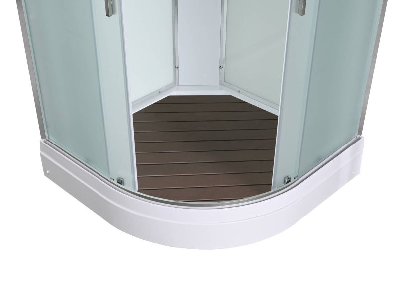 Стильная душевая кабина AvaCan EM2080N сочетает в себе высокую функциональность, практичность и надежность. При изготовлении применяется безопасное закаленное стекло толщиной 5 мм (матовое), надежно фиксируемое алюминиевым профилем. Сборка без силикона (увеличивает срок службы), внутренняя сборка(облегчает установку и ревизию; позволяет установить в ограниченном пространстве), смеситель резьбовой (без хомутов). Съемный экран поддона (позволяет осуществлять ревизию сифона). Цвет профиля  хром. Двойные металлические ролики дверей (увеличивают срок службы).В комплекте : душевая штанга, две полочки , арома-лейка с витамином С (картридж съемный),полимерная вставка в поддон(имитация дерева),сифон, ручки дверей из нержавейки , двойные ролики .