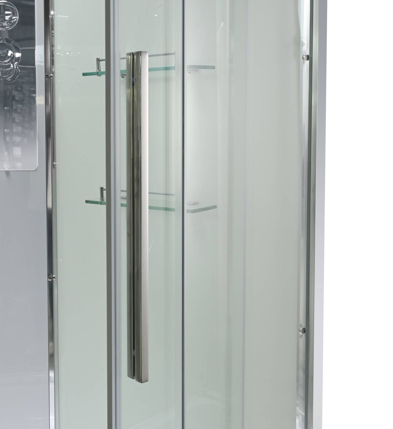 Стильная душевая кабина AvaCan сочетает в себе высокую функциональность, практичность и надежность. При изготовлении применяется безопасное закаленное стекло, надежно фиксируемое алюминиевым профилем. Профиль сделан из алюминия повышенной прочности. Сборка без силикона (увеличивает срок службы, защищает от протечек), внутренняя сборка (облегчает установку и ревизию; позволяет установить в ограниченном пространстве и обойтись без демонтажа других сантехнических приборов), смеситель резьбовой (без хомутов). Съемный экран поддона (позволяет осуществлять подключение и ревизию сифона).Двойные металлические ролики дверей (распределение нагрузки на два ролика, увеличивают срок службы). Душевая штанга(позволяет регулировать по высоте ручную лейку), ручная арома-лейка с витамином С (картридж в комплекте,есть возможность замены или удаления картриджа), полочки(из стекла, с ограничителем), сифон с гидрозатвором.