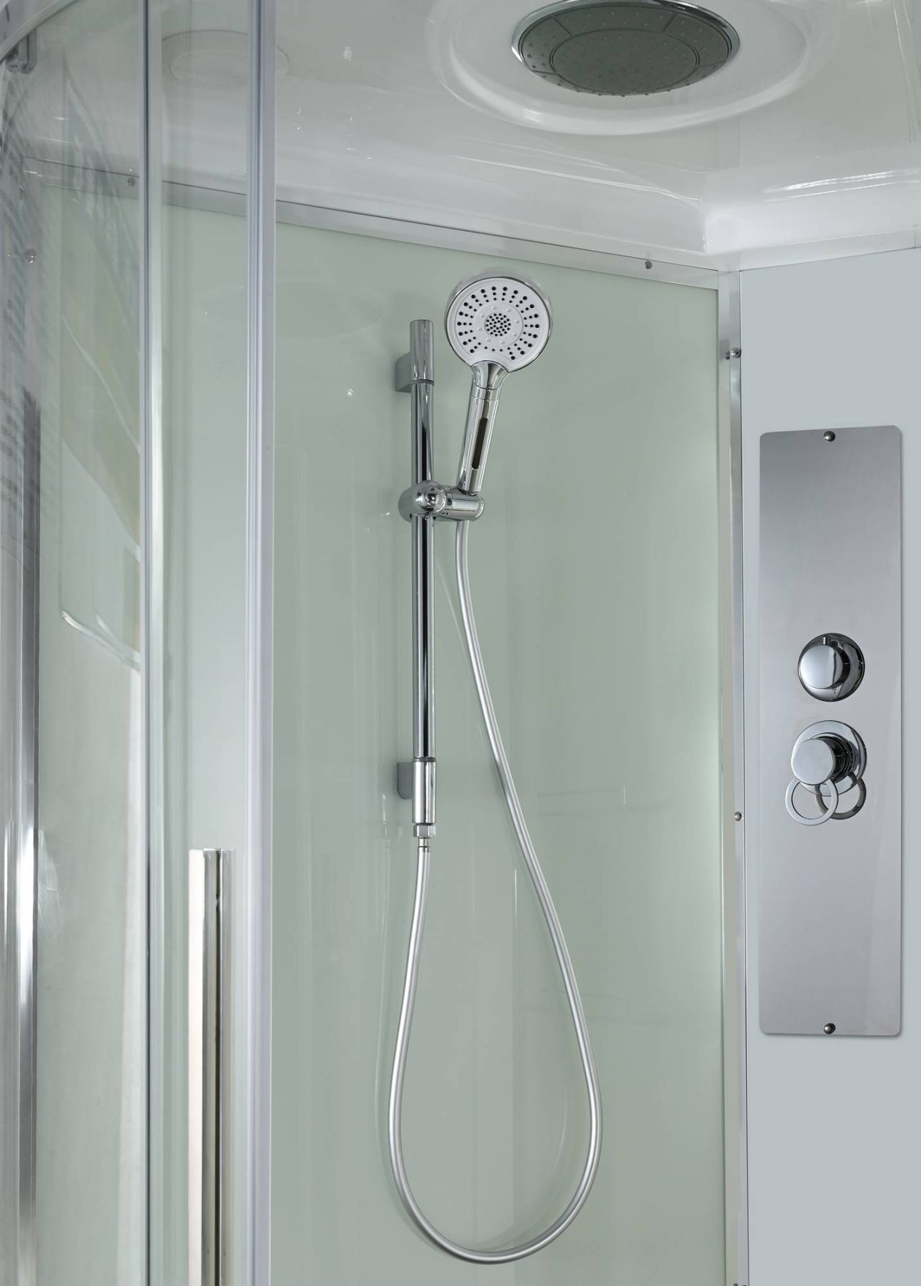 Стильная душевая кабина AvaCan сочетает в себе высокую функциональность, практичность и надежность. При изготовлении применяется безопасное закаленное стекло, надежно фиксируемое алюминиевым профилем. Профиль сделан из алюминия повышенной прочности. Сборка без силикона (увеличивает срок службы, защищает от протечек), внутренняя сборка (облегчает установку и ревизию; позволяет установить в ограниченном пространстве и обойтись без демонтажа других сантехнических приборов), смеситель резьбовой (без хомутов). Съемный экран поддона (позволяет осуществлять подключение и ревизию сифона).Двойные металлические ролики дверей (распределение нагрузки на два ролика, увеличивают срок службы). Душевая штанга(позволяет регулировать по высоте ручную лейку), ручная арома-лейка с витамином С (картридж в комплекте,есть возможность замены или удаления картриджа), полочки(из стекла, с ограничителем), сифон с гидрозатвором.