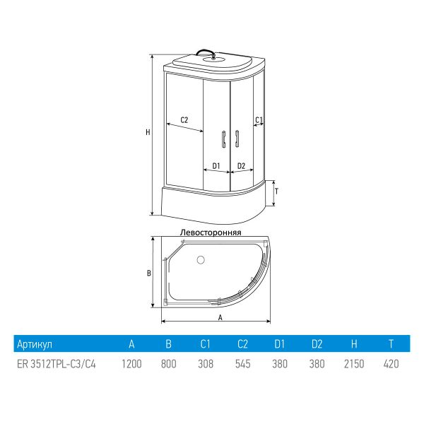 Душевая кабина Erlit Comfort ER3512TPL-C3-RUS (1200x800x2150)