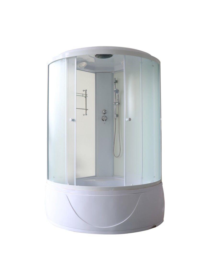 Душевая кабина BE118Размер: 118х118х215 смПросторный душевой уголок с высоким поддоном. Светлая модель актуальна для любого оформления ванной комнаты. Внутри кабины достаточно места, чтобы с комфортом принимать водные процедуры. Кабина герметична, вода сквозь стыки не просачивается. Внутри хорошо сохраняется тепло.Достоинства:Стекло: 4 мм матовое закаленное. На матовом полотне практически не видны разводы от воды и мыла.Стенки: закаленное белое стекло,4 мм.Профиль: белый, алюминиевый, устойчив к образованию коррозии.Поддон: высокий, полукруглый. В поддоне удобно купить детей и животных, замачивать крупные вещи.Раздвижные двери открываются плавно, створки смываются плотно.Комплектация: полка, верхний душ ТРОПИК, ручной душ, зеркало, налив воды в поддон. Сифон не пропускает в ванную запахи канализации.Внимание! Производитель оставляет за собой право вносить изменения в конструкцию и комплектацию моделей без предварительного уведомления!