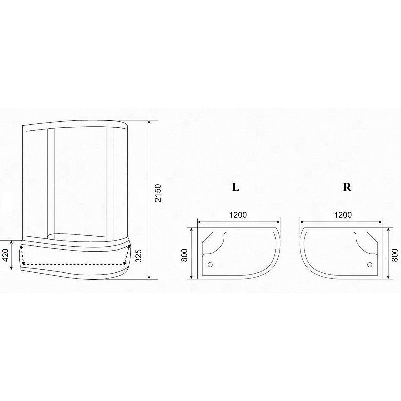 Душевая кабина Parly Bianco Эконом 120x80 R EB1221R.Характеристики:Форма: асимметричная.