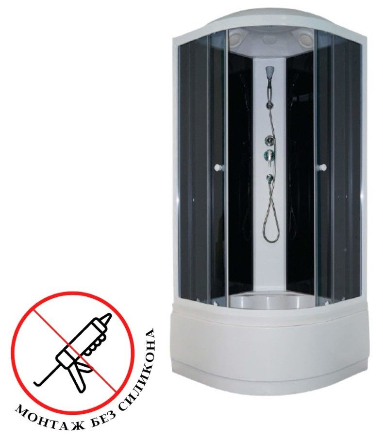 Комплектация: верхний душ ТРОПИК, ручной душ, сифон. Магнитные уплотнители под 45° не позволяют теплу выходить из душевой кабины, защищают помещение от просачивания воды.