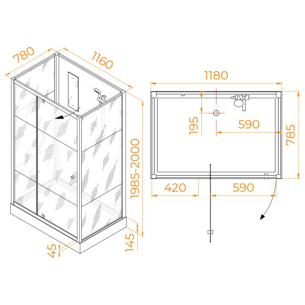 Душевая кабина - лучший выбор для тех, кто любит решения “под ключ”.В комплектацию мы включили всё необходимое: сифон и гофру для подключения, смеситель, полочку и зеркало, надежный акриловый поддон прочностью до 150 кг и ручной душ со шлангом длиной 1 м.Штанга душа регулируется по высоте - при монтаже наши специалисты учтут любые ваши пожелания.Стенки кабины выполнены из безопасного закаленного стекла толщиной 5 мм и обрамлены широкой матовой полосой по запатентованной технологии Frost Line - это стильное и практичное решение.Для профилей конструкции мы используем высококачественный анодированный алюминий и даем официальную гарантию 3 года.Серия душевых кабин Andaman представлена профилями с сияющим белоснежным покрытием для безупречного сочетания с интерьером вашей ванной комнаты, а широкая размерная линейка позволяет подобрать идеальный формат душевой кабины - квадратная или прямоугольная, просторная или компактная? Решать вам!