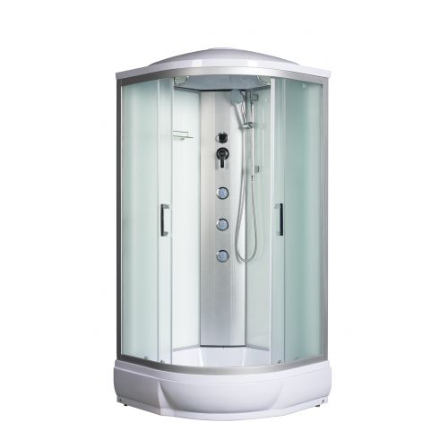 ~ крыша ~ верхний душ ~ вентиляц. отв-я(2шт) ~ центр.стойка ~ штанга ~ руч.душ 3х режимн. ~ смеситель с переключ. режимов ~ 3 г/м форс. ~ зеркало ~ полочка ~ поддон п/кр.низ. со съем.экр. (Н=26см) ~ сифон