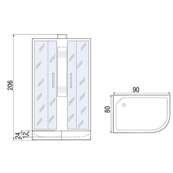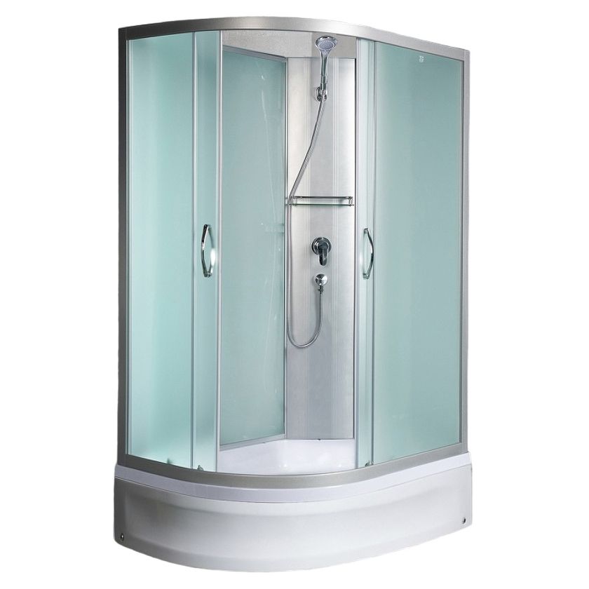 Душевая кабина River Nara 90x80 МТ R Б/К 10000008782 без гидромассажаушевая кабина River Nara 90x80 10000008782. Характеристики: Цвет профиля: хром матовый. Материал профиля: алюминий. Исполнение полотна двери: матовое закаленное стекло толщиной 4 мм. Исполнение задней стенки: матовое закаленное стекло. Размеры (ШхВхД): 900х2060х800 мм. Материал поддона: акрил. Высота поддона: 240 мм. Глубина поддона: 120 мм. Антискользящие покрытие. Каркас поддона из нержавеющей стали. Регулируемая высота ножек. Ножки для поддона из двух частей. Имеют систему шарнира для возможности установки на неровную поверхность. Тип поддона: средний. Экран: съемный. Конструкция дверей: раздвижная. Количество дверей: 2. Форма: асимметричная. Полочка. Держатель ручного душа. Ручной душ системой Easy Clean (легкое очищение). Шланг для душа 1,5 м системой Antitwist (вращение шланга на 360 градусов). Количество режимов ручного душа: 3. Смеситель. Водонепроницаемые уплотнители на неподвижных стеклах и стеклах раздвижных дверей. Регулировочный профиль, позволяющим компенсировать небольшие неровности стены. Хромированные кнопочные двойные металлические ролики. Сифон с гидрозатвором (водяным замком), сеткой и гофротрубой (выход 40/50). В комплекте поставки: Душевая кабина