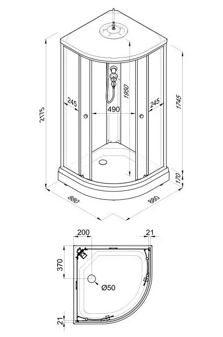 Душевая кабина с крышей ДК Экстра 88*88 А (7 мест+сифон D50) Размер: 88 x 88 x 217.5 см ... Подробнее