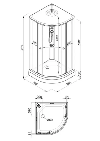 Душевая кабина с крышей ДК Экстра М3 88*88 А, 3 места Размер: 88 x 88 x 217.5 см Конс... Подробнее