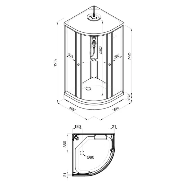 Душевая кабина Triton Грей А 90х90 профиль чёрный/стекло грей