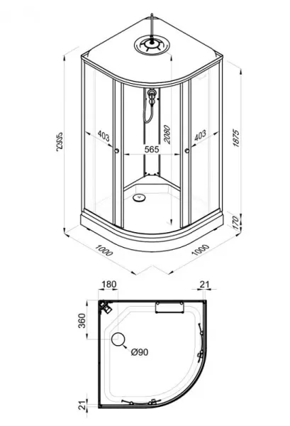 • Душевая кабина с крышей