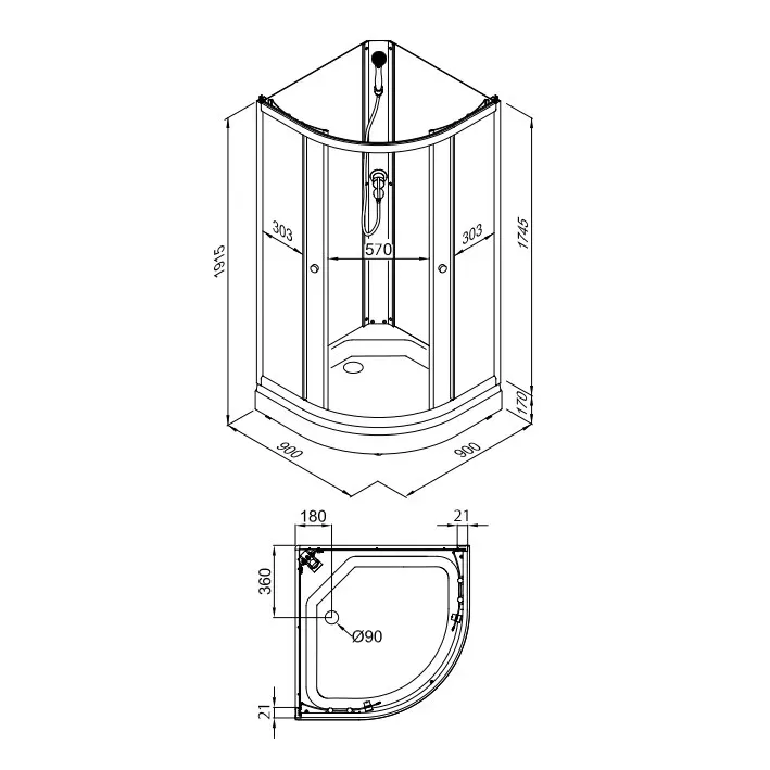 - Размеры: 90х90х191.5