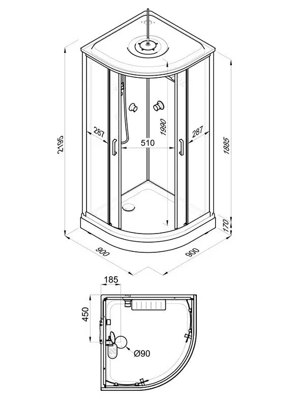 Душевая кабина с крышей ДК Прайм-Блэк М3 90*90А, 3 места Размер: 90 x 90 x 219.5 см К... Подробнее