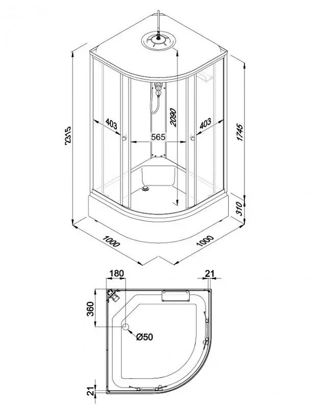 Размер: 100 x 100 x 231.5 см