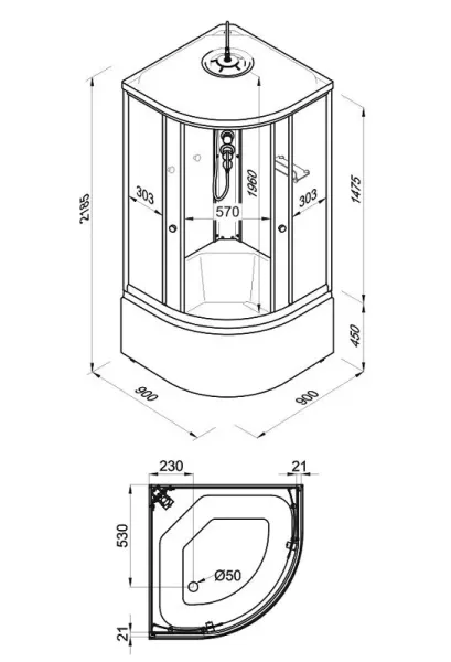 Душевая кабина с крышей ДК Ультра 90*90 Б, 9 мест+сифон D50 Размер: 90 x 90 x 218.5 см ... Подробнее