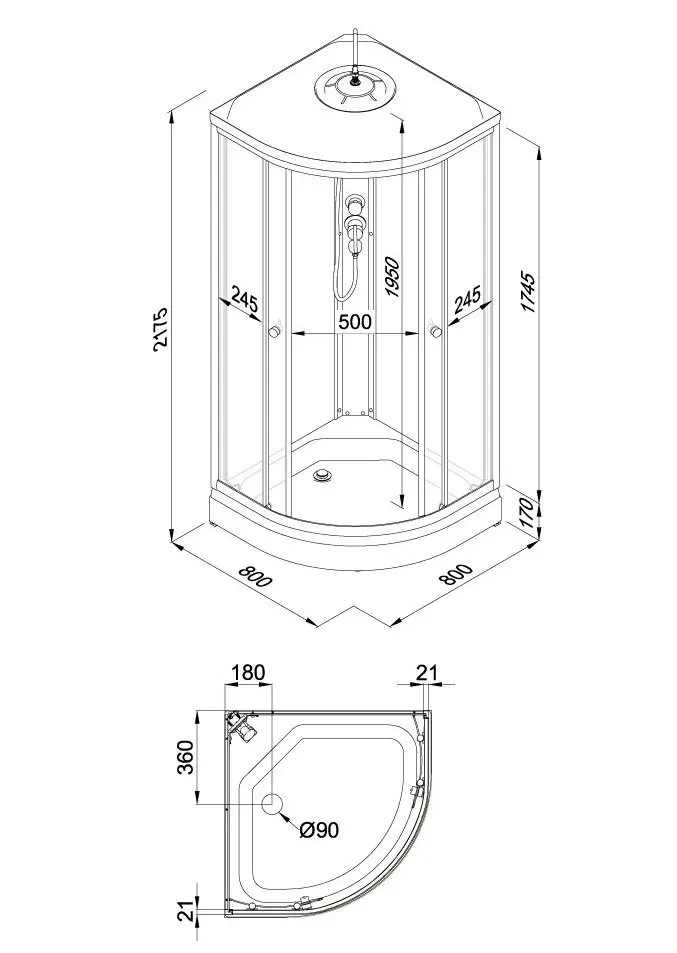 Душевая кабина с крышей ДК Вельвет 80*80 А, 7 мест+сифон D90 Размер: 80 x 80 x 217.5 см ... Подробнее