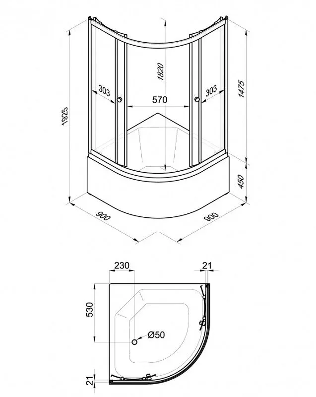 Душевой уголок Размер: 90 x 90 x 147.5 см Высота с поддоном: 192.5 см Конструкция дв... Подробнее