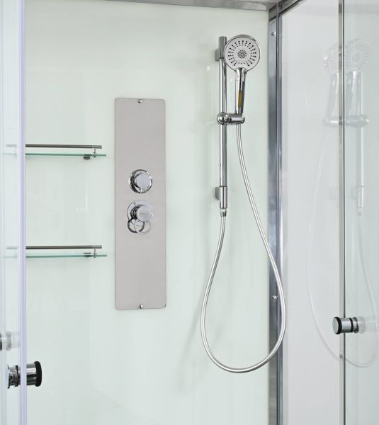 Стильная душевая кабина AvaCan сочетает в себе высокую функциональность, практичность и надежность. При изготовлении применяется безопасное закаленное стекло, надежно фиксируемое алюминиевым профилем. Профиль сделан из алюминия повышенной прочности. Сборка без силикона (увеличивает срок службы, защищает от протечек), внутренняя сборка (облегчает установку и ревизию; позволяет установить в ограниченном пространстве и обойтись без демонтажа других сантехнических приборов), смеситель резьбовой (без хомутов). Двойные металлические ролики дверей (распределение нагрузки на два ролика, увеличивают срок службы). Душевая штанга(позволяет регулировать по высоте ручную лейку), ручная арома-лейка с витамином С (картридж в комплекте,есть возможность замены или удаления картриджа), полочки(из стекла, с ограничителем), сифон с гидрозатвором.