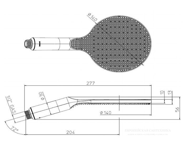 • Размер ручного душа, см: