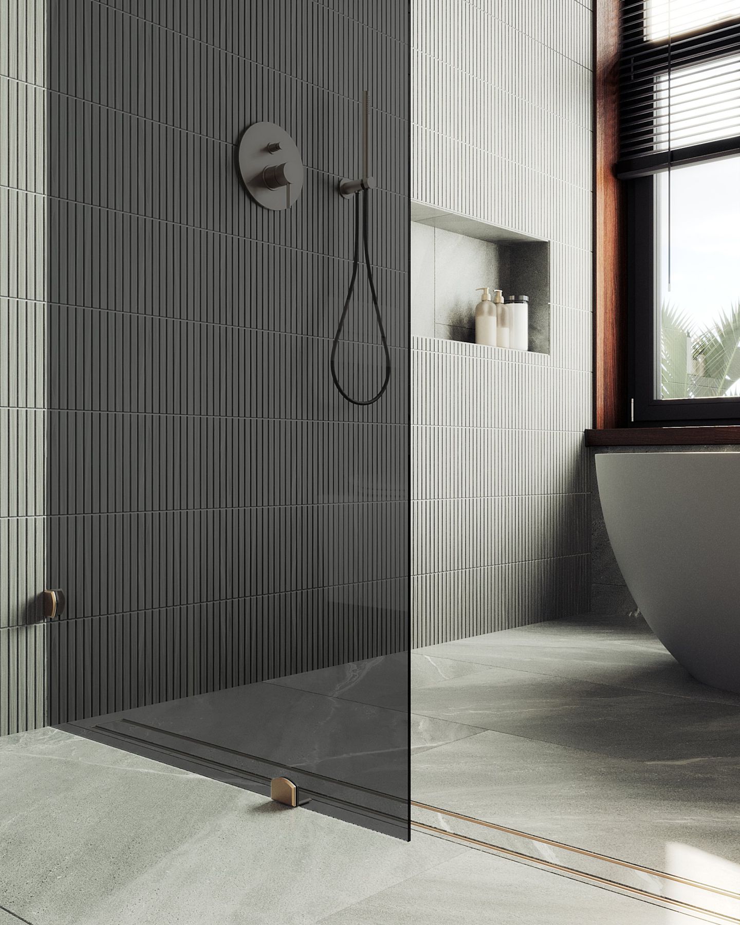 Стеклянная душевая перегородка "Коннектор стена-стекло" - это стильное и современное решение для организации пространства в вашей ванной комнате. Эта перегородка изготовлена из высококачественного закаленного стекла толщиной 8 мм, что обеспечивает прочность и долговечность конструкции. Одним из главных преимуществ этой перегородки являются коннекторы, которые надежно фиксируются и обеспечивают безопасность при принятии душа. Закаленное стекло , цвет графит , толщина 8 мм , 1950*790-1 шт.