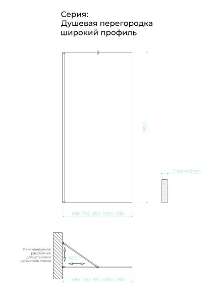 Душевая перегородка в профиле by Deonria P-195-69-8-T-HM 69см хром матовый/прозрачный купить