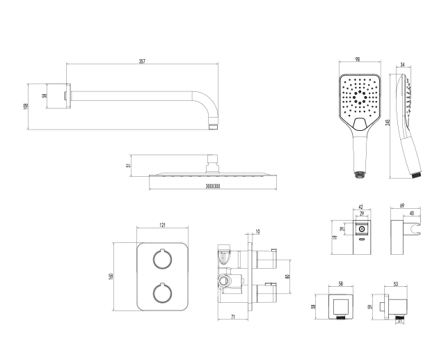 - Верхняя поворотная душевая лейка «Тропический дождь» 300x300 мм