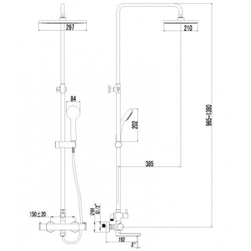 Артикул LM7862CСмеситель для ванны и душа с регулируемой высотой штанги, поворотным изливом и верхней душевой лейкой "Тропический дождь"
