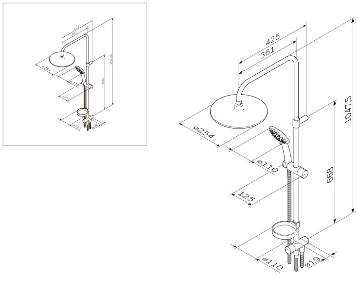 -Удобство настройки: регулируемые по высоте телескопическая поворотная штанга 800 - 1200 мм, комфортная в использовании людьми любого роста. Возможность монтажа в существующие отверстияДушевую стойку Am.pm Like F0780000 250мм Вы можете купить у нас на сайте Gidro-butik