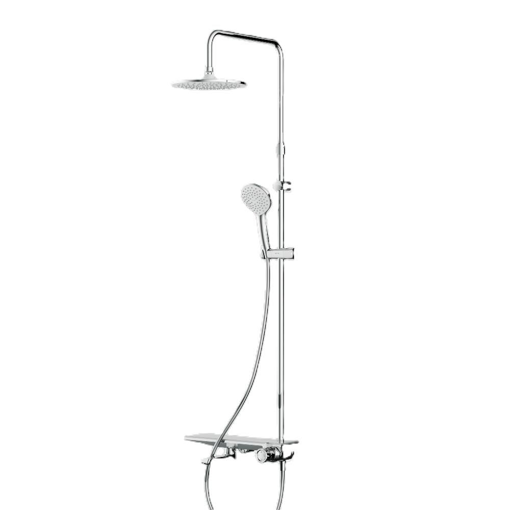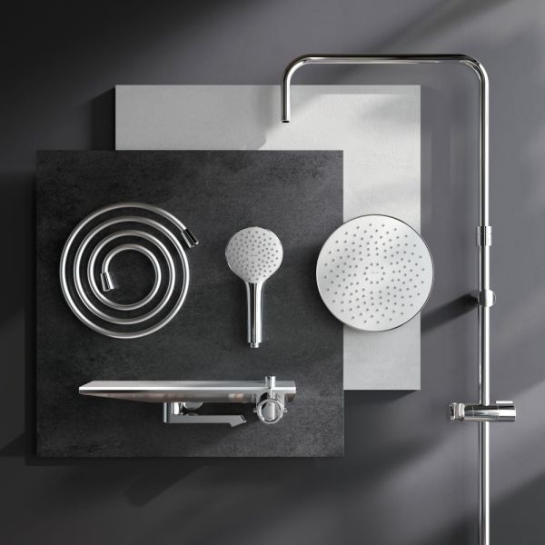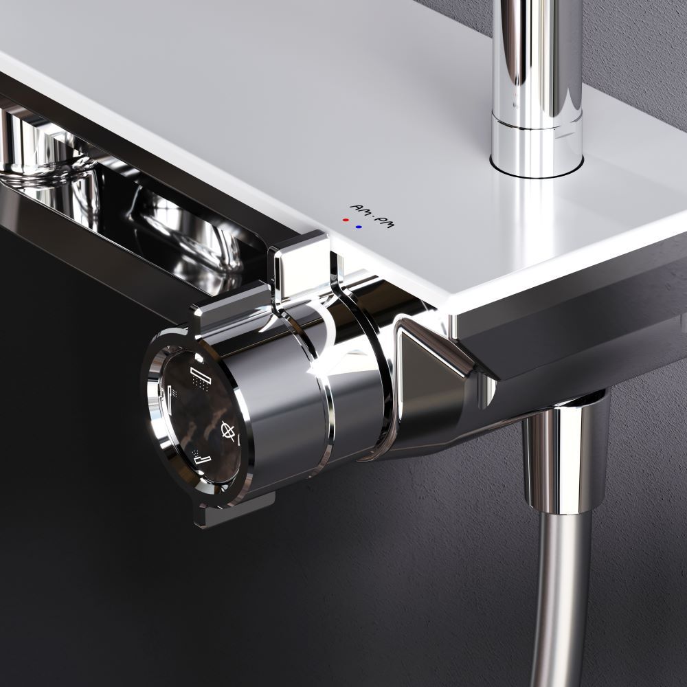 Долгожданное пополнение культовой коллекции Gem — Душевая система с ванно-душевым смесителем-полкой.Все детали душевой системы – от пропорций ручного и верхнего душей до рисунка расположения форсунок на лейках – подчинены единой концепции в ультрамодном стиле Dynamic Organic. Дизайн разработан всемирно известным агентством Brandis (Германия).Еще больше места для хранения: верхняя часть смесителя выполнена в виде вместительной полочки. Теперь все необходимые душевые принадлежности всегда будут под рукой.Уникальная система управления: регулируйте температуру и напор воды и переключайте потоки между смесителем, ручным и верхним душем поворотом всего одной ручки — управление еще никогда не было таким простым и интуитивно понятным.Продуманные детали для максимального удобства использования: телескопическая штанга регулируется по высоте в диапазоне от 1030 до 1460 мм, обеспечивая комфорт для людей любого роста, душевой шланг 1750 мм с защитой от перекручивания, увеличенный верхний душ диаметром 220 мм, ручной душ диаметром 120 мм.