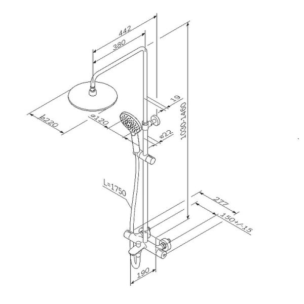 Диаметр верхнего душа: 220 мм.
