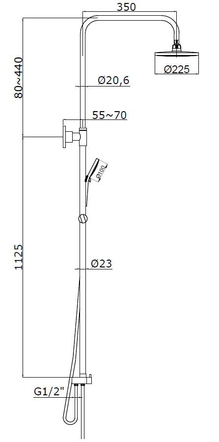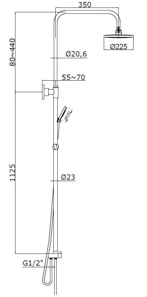 • Размер верхнего душа, мм 225