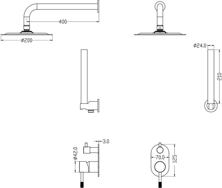 • Размер верхнего душа, см: