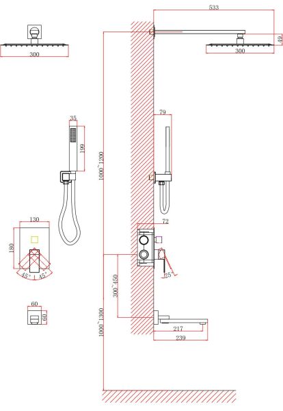 Душевая система DQ Bayern.Liszt DA1515608A04 белый матовый