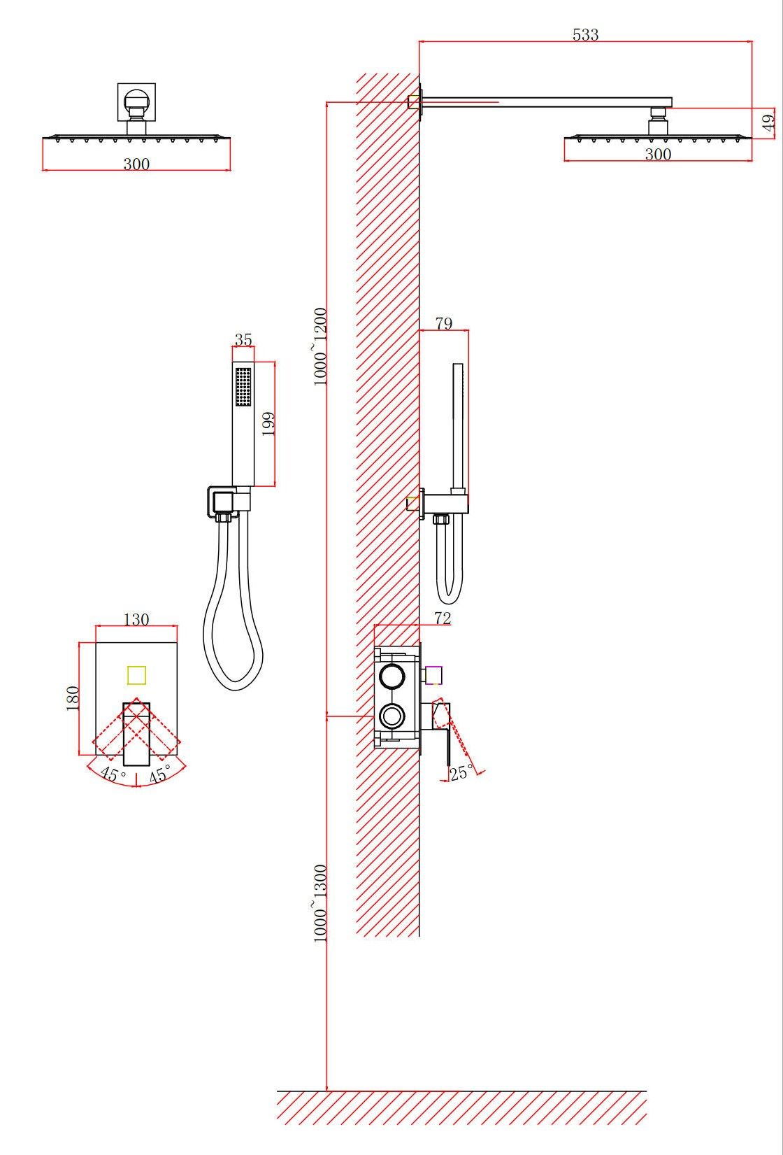 • Размер верхнего душа, см:
